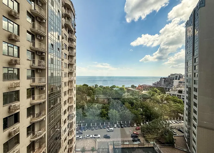 Apartament 44 Pearl 1-Bedroom Panoramic Sea View Apartment oferuje wyposażoną kuchnię oraz pokoje z sejfem, sofą i telewizją satelitarną. Odległość od Odeski Ogród Zoologiczny do apartamentu wynosi 6 km, a od Filharmonia w Odessie około 7 km.